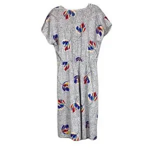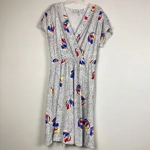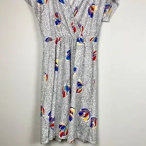 Chapter Two Vintage Dress. Made in the USA. Crossover top, elastic waist, shoulder pads. 100% polyester.