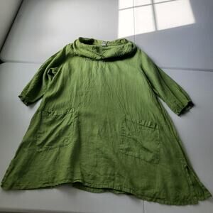 Match Point Tunic Shirt Womens Medium Green Linen Cowl Neck 3/4 Sleeve Pockets