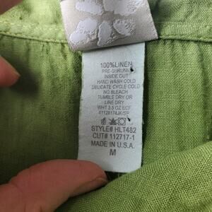 Tags and identifiers: Interior neck label reads Match Point U.S.A.; interior care tag lists 100% LINEN, PRE-SHRUNK, MADE IN U.S.A., style number HLT482, and cut number 112717-1.