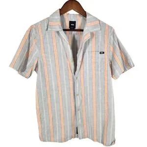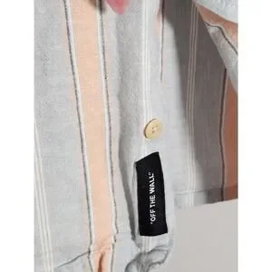 Vans Classic Fit Peach Blue Cabana Striped Short Sleeve Button Up Shirt Size S