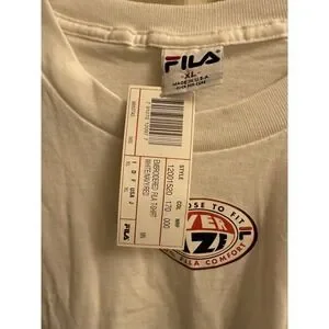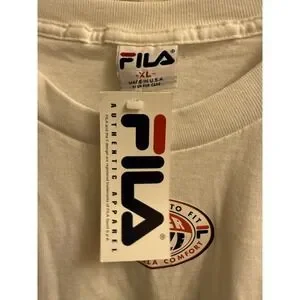 Vintage FILA Spell Out Embroidered Classic Graphic Tshirt Size XL White NWT