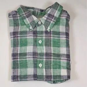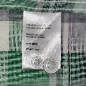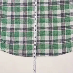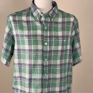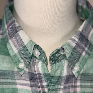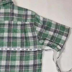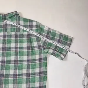 Weatherproof Vintage Men’s Linen Blend Green and White Plaid Short Sleeve Shirt