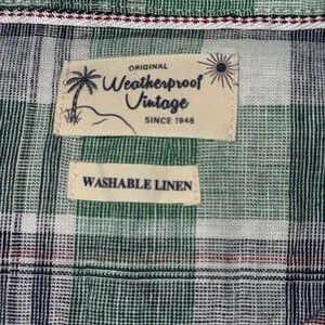 Weatherproof Vintage Men’s Large Linen Green & White Plaid Short Sleeve Shirt