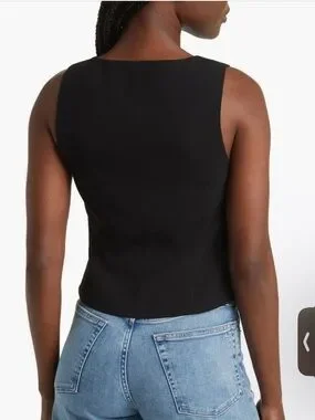 Keywords: Rag Bone, vest, black vest, sleeveless, button up, tailored, womenswear, minimalist, chic, workwear, evening, layering piece, Japanese crepe