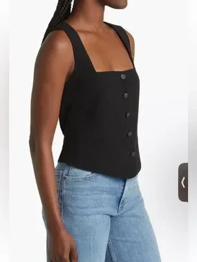 Elevate your wardrobe with this striking RAG & BONE Mariana vest. Its sharp square neckline and sleek button front exude polished confidence, while the tailored silhouette flatters your figure with a sophisticated cut. Two expertly placed welt pockets add a touch of classic detail. Perfect for layering over a crisp button-down for a sharp office look, or pairing with statement jewelry for an evening out.