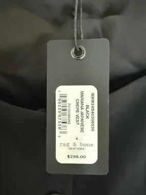 Rag & Bone Mariana Crepe Vest Size 4 $298 Women's Sleeveless Black Size 4 NWT