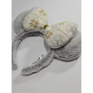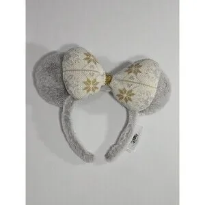 2020 Disney Christmas Winter Holiday Fuzzy Silver Gold Minnie Ears Headband