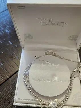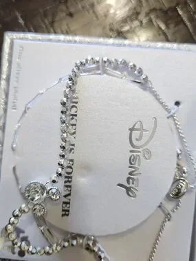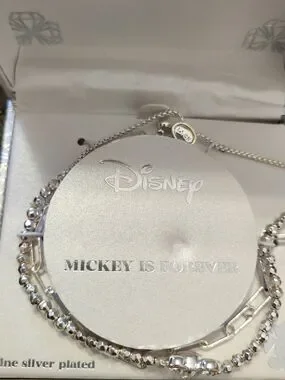 Elegant Disney bracelet featuring a silver-plated finish and a sparkling Mickey-shaped crystal charm. Designed for everyday wear and special moments. The silver color adds a polished, versatile touch to any outfit.