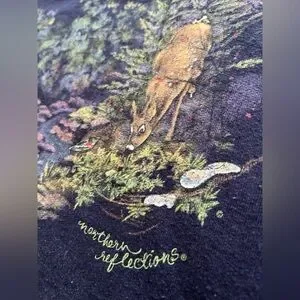 90s Vintage Northern Reflections Womens Dark Blue Wildlife Deer Graphic Cottagecore Pullover Sweater