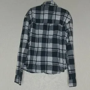 Cat & Jack black and white plaid button front long sleeve shirt with a chest pocket. Size L (10/12) Kid. Please see approximate measurements below.