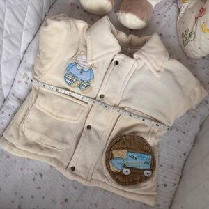 ⭒ 6M Cream Chunky Jacket Button Zipper Embroidered Bear Pockets Collar Velour ⭒