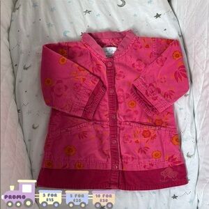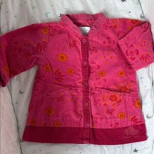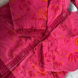 Beautiful pink floral light corduroy long sleeve button up shirt / jacket perfect for spring <3