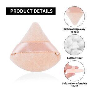 6pc Make Up Powder Puffs Triangular Velvet Puff With Ribbon Holder - Brand New
