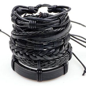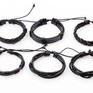 6pcs Men's Multilayer Leather Bracelet(Black) ADJUSTABLE SIZES