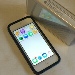 Very good preowned condition iPod touch (6th generation) in white with a silvery back (it looks like there's a touch of gold or beige to it, like a champagne gold; but could be my eyes playing tricks). Hardly used. Will be wiped. Does not include original charger, but includes a case and ear buds. I will see if I have an extra charger lying around, but no guarantees. I believe this one has around 60GB. Not sure if this is the original plastic case, but it is included and phone seems to fit inside. Will upload photos of the earbuds shortly.