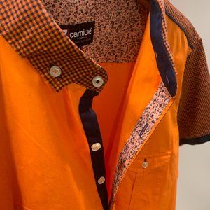 7 Camicie slim fit Orange Short Sleeve Button Down Shirt size XL
