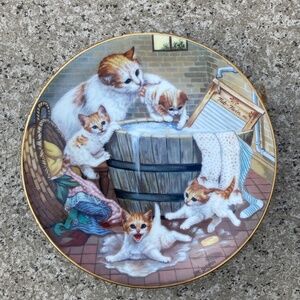Back of plates read: "A charming look at playful kittens in nostalgic settings from 'Country Kitties,' a series of eight limited edition collector plates made of fine porcelain."