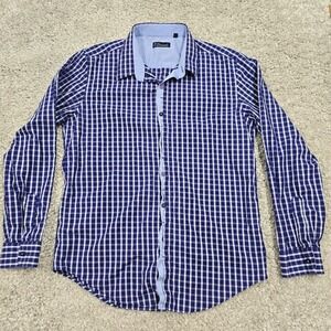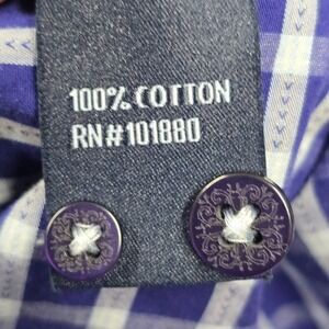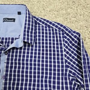 7 Diamonds Shirt Mens Large Purple Plaid Button Up Long Sleeve Cotton Office