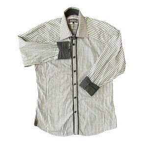 7 Downie St Button Down Shirt Mens Size 4 Medium Flip Cuff Black White Check
