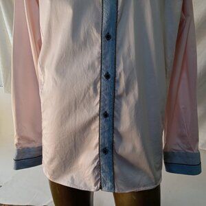 7 Downie St. Button Up Shirt Men's Sz 6 Flip Cuff Blue Long Sleeve London Pink