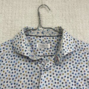 7 Downie St Mens Sz L Short Sleeve Button Up Shirt Multicolor Polka Dots AOP