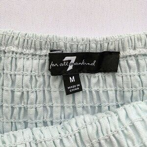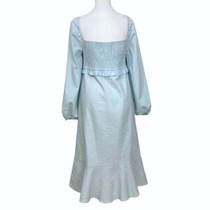 7 FOR ALL MANKIND BABY BLUE LINEN PEASANT SMOCKED MIDI DRESS - M