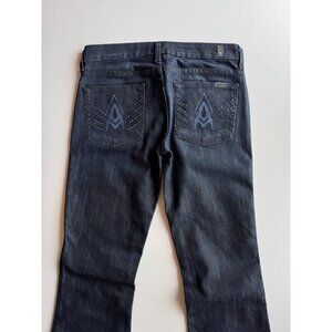 7 FOR ALL MANKIND Dark Rinse Embroidered Crystal "A" Pocket FlaredJeans, Size 27