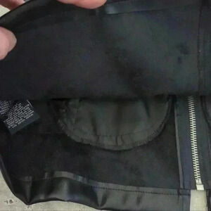 • Style: Fleece lining inside, zipper from waist to bottom, faux leather, two front zippers w/ pockets, mini skirt