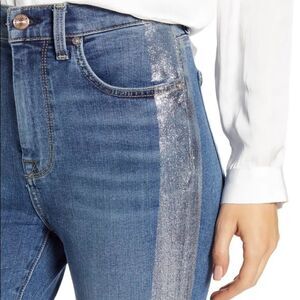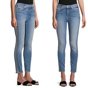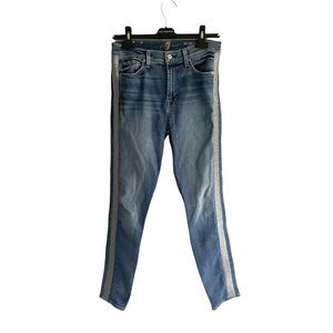 7 FOR ALL MANKIND Luxe Vintage High Waist Ankle Skinny Denim Jeans with Silver Lurex Side Stripe