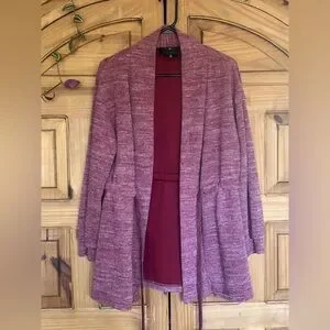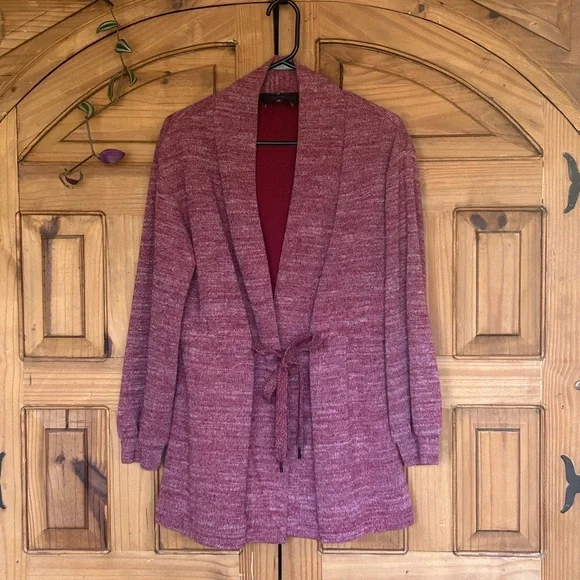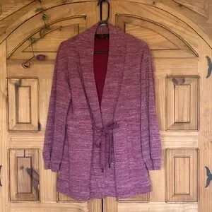 7 FOR ALL MANKIND Heathered Raspberry Open Cardigan, Shoe-lace Cinch Waist to close, Size Small.