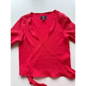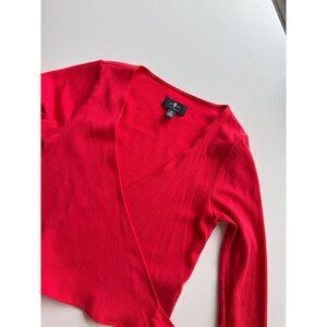 7 FOR ALL MANKIND Red Lyocell Ribbed Long Sleeve Wrap Top T-Shirt, Size M