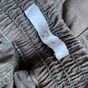 A slouchy cropped pull-on pant featuring a soft, brushed-twill. Styled with a gathered elastic waist and cuffed ankles. Details include zip hip, faux fly and patch back pockets.