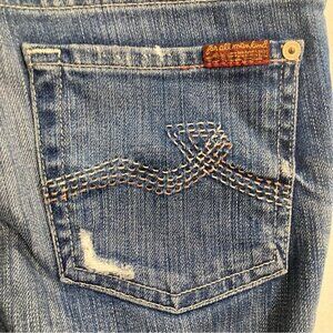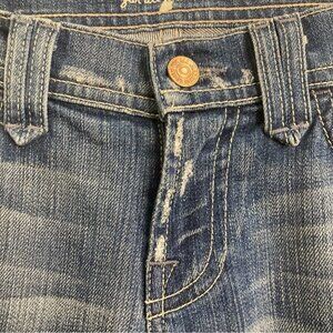 7 FOR ALL MANKIND Sz 26 Rocker Distressed Mid-Wash Wiskering Low Rise Jeans