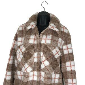 7 FOR ALL MANKIND | TEDDY CROP BROWN PLAID JACKET SIZE M