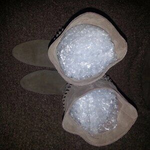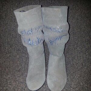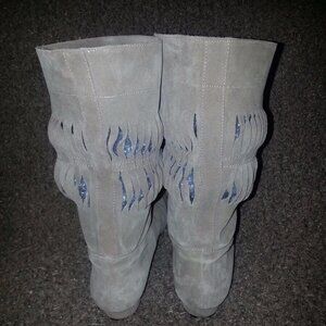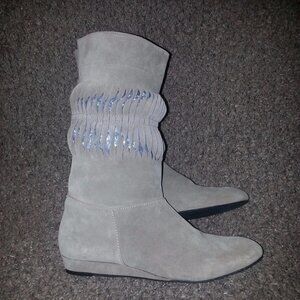 7 FOR ALL MANKIND-Taupe Suede Mid-Calf Slouchy Cut-Out Boots-Sz 8.5M-Near Mint