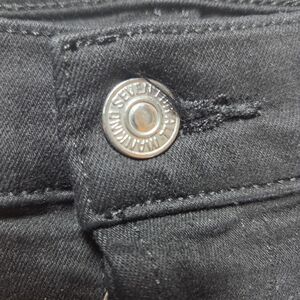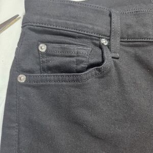 Experience the sleek sophistication of these black ankle-cropped jeans from 7 For All Mankind. Crafted with precision, they offer a modern fit that effortlessly complements any ensemble. Perfect for both casual and formal occasions, these jeans are a wardrobe essential. Inseam 27" Rise 9" Waist 26"