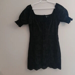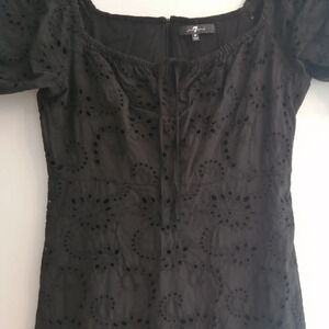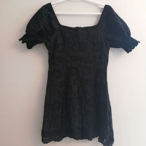 7 For All Mankind Black Eyelet Lace Dress Square Neck Milkmaid Boho Medium