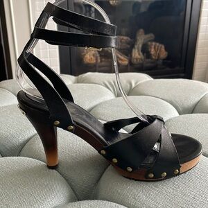 7 For All Mankind Black Leather Sandals with Wooden Ombré Heels