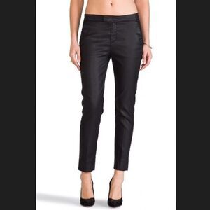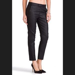 The Slim Chino is the feminine take on a traditionally masculine pant. With a tabbed waist and chino pockets, it is a slouchy fit at the waist and hits just above the ankle. This lightweight fabric is coated for a leather-like appearance. Excellent condition.