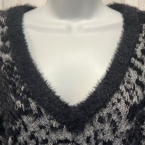 7 For All Mankind Black/Grey Jacquard Knit V-Neck Sweater Size XS
