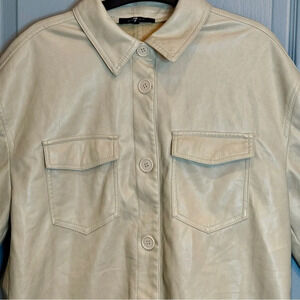 7 For All Mankind Button Up Shirt Size Medium Cream Faux Leather Oversized READ