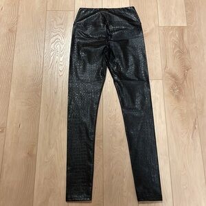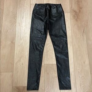 7 For All Mankind Croc Embossed Black Faux Leather Leggings, sz XS