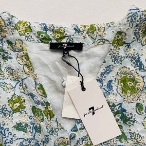 7 For All Mankind Eyelet Floral Peplum Ruffled Top ( M )