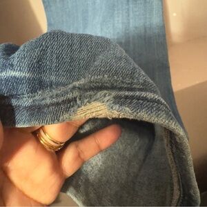 Signs of usage: Very good condition, small damage on the left leg hem, see picture.
