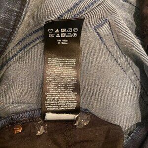Gently worn dark denim jeans. Stretchy, zipper fly, 85% cotton/13% lyocell/2% spandex. Inside tag has minor bit of sticker residue accidentally washed before removing (could probably remove with a bit of alcohol). Overall a great pair of jeans to add to any wardrobe! See pics for measurements