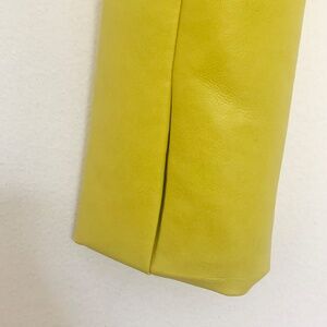 Add a stylish and edgy touch to your wardrobe with this high-quality yellow faux leather jacket from 7 for All Mankind. Its modern, cropped design and biker-inspired elements make it a versatile statement piece that is sure to turn heads. This jacket has a real front pocket and two-button closure and is in perfect condition.