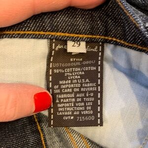 Chic women's flare jeans. Classic blue denim with bold orange stitching. Perfect for any occasion.