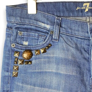 7 For All Mankind Josefina Skinny Boyfriend Studded Distressed Blue Jeans 25