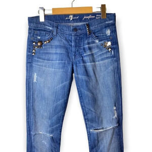7 For All Mankind Josefina Skinny Boyfriend Studded Distressed Blue Jeans 25