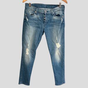 7 For All Mankind Distressed Button Fly Skinny Stretch Jeans